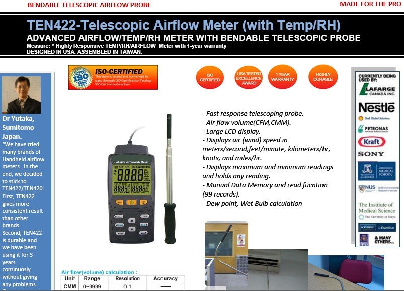 TEN422 ADVANCED AIRFLOW/TEMP/RH BENDABLE TELESCOPIC AIRFLOW METER