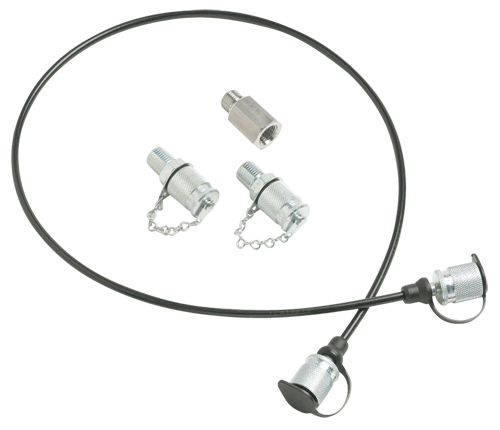The Fluke 700HTH-1 hydraulic test hose is a 10,000 psi, 690 bar working pressure test hose that features stainless steel and nylon construction for use in connecting a Fluke-700HTP-1 or other hydraulic test pump to a unit under test. The Fluke 700HTH-1 allows connection to both a Fluke pressure module and a calibration unit under test from a Fluke 700HTP-1 hydraulic test pump simultaneously. 700HTH-1 is compatible with water and non-corrosive oil.