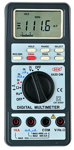 ● 4000 counts LCD with a maximum display of 3999. ● Angled display design helps the user to identify the reading of value easier. ● Auto ranging designed. ● Bar graph LCD display. ● Range change function. ● Relative/Maximum/Minimum modes. ● Peak hold mode. ● VAHz mode measures frequency in voltage or current mode. ● 40M Hz frequency counter. ● Auto Power off. ● Continuity check. ● Data hold function. ● Low battery indication. ● Over range indication. ● Fuse protection. ● Special hook design used to hang the meter for ease of use.